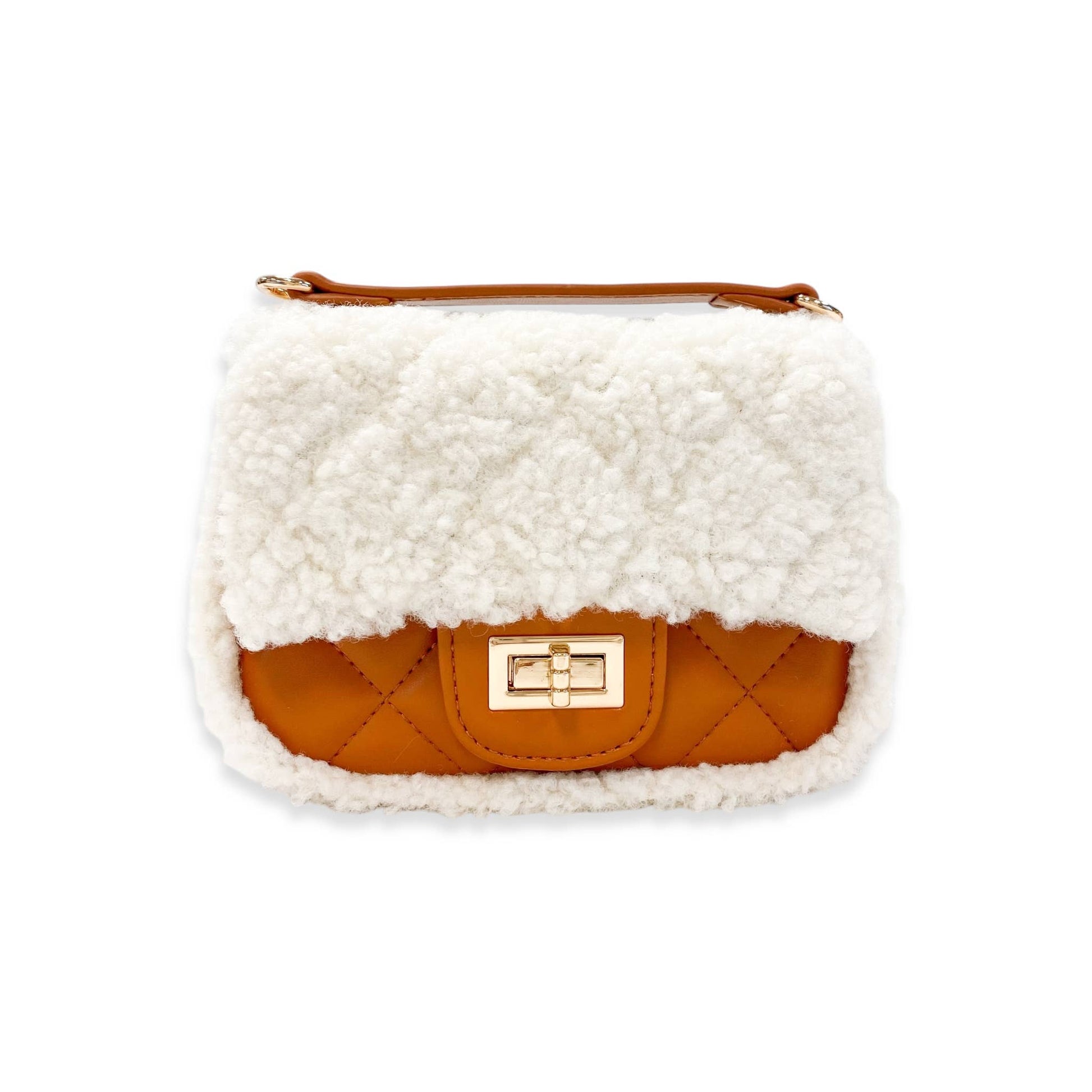 This sherpa quilted purse features a classic gold chain. The mix of PU leather and fur is the perfect combination for the winter season. 100% PU leather. Dimension:- 6-1/4" Length x 4-1/4" Height x x 2-1/2" Width