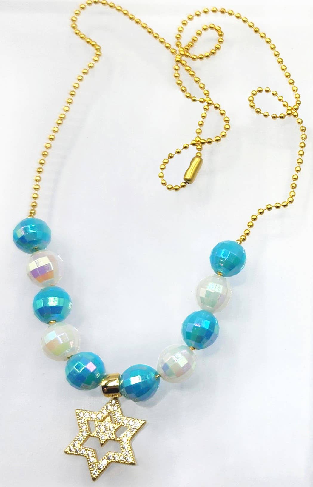 Kids can get ready to light the candles and make latkes while wearing your own handmade Hanukkah Jewelry!! Celebrate the holiday with pride with our Jewish and Hanukkah themed charms and beads. Each kit includes 7-9 assorted pendants including one 14k gold-plated pave rhinestone pendant, assorted blue, silver and gold beads, 4 tassel charms, and approximately 60" of gold plated ball chain which can be easily cut to desired length. AND, as a bonus, each kit includes its own dreidel just to help get the fun going!! Each kit makes 6-8 pieces of jewelry with extra parts to spare. A great activity for kids to do together and make gifts!
