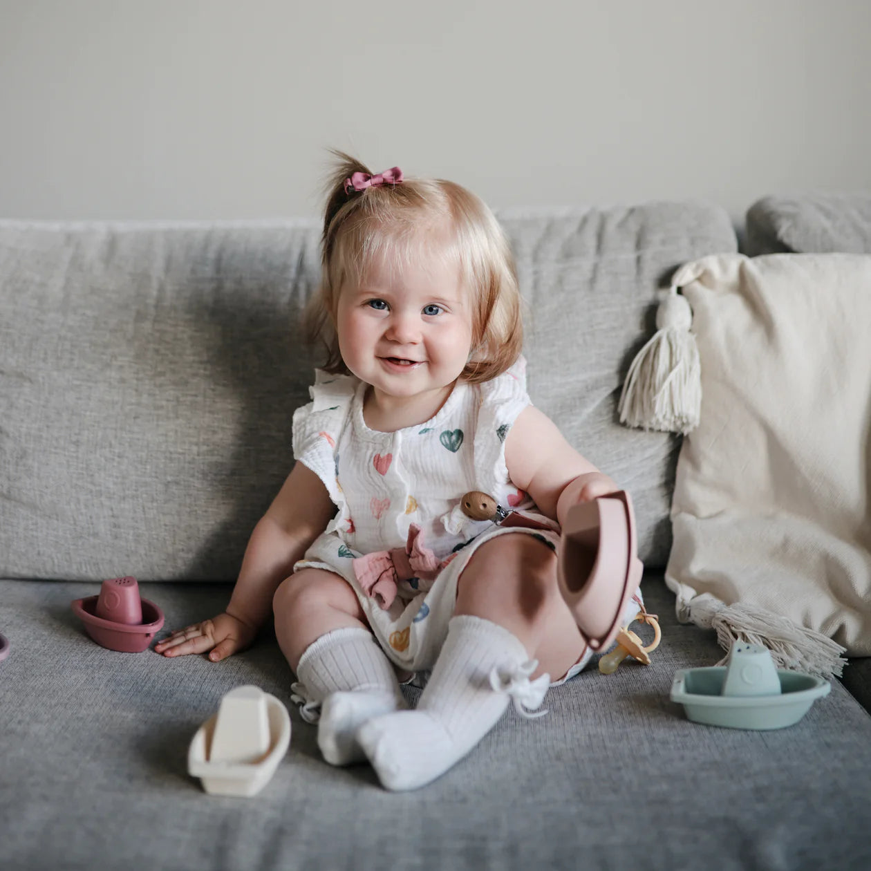 Set sail with our stackable bath boats that encourage independent play for children of all ages. Packaged as a set of five, these plastic boats link together to create a floating train of toys. Made in Denmark, these nautical classics will inspire the imaginations of even the littlest sailors.